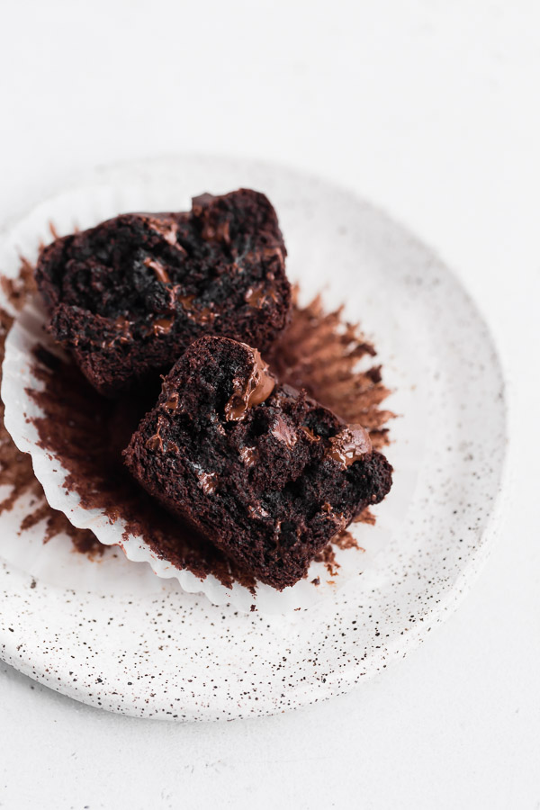 These rich and super fudgy double chocolate muffins come together in minutes. This no fuss recipe can be made without a mixer and makes the perfect indulgence any day of the week.
