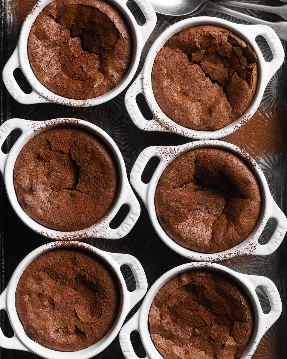 Any way you top them, these flourless molten chocolate cakes are are pure chocolate heaven! I know I say that about a lot of my recipes, but I really mean it friends. Make these. You won’t be sorry. And because they are baked in individual ramekins or coquettes, you don’t even have to feel bad about not sharing.