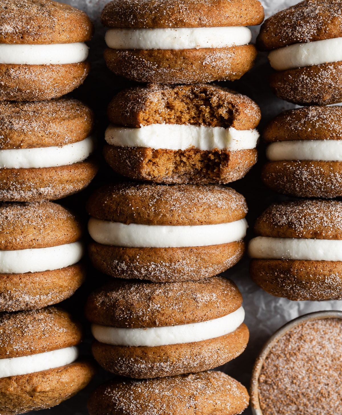 These gingerbread whoopie pies are pillowy soft, perfectly spiced and that maple cream cheese filling really makes them shine. Save room for seconds friends, you will be baacckkk! Get the full ingredient list and instructions in the recipe card below.
