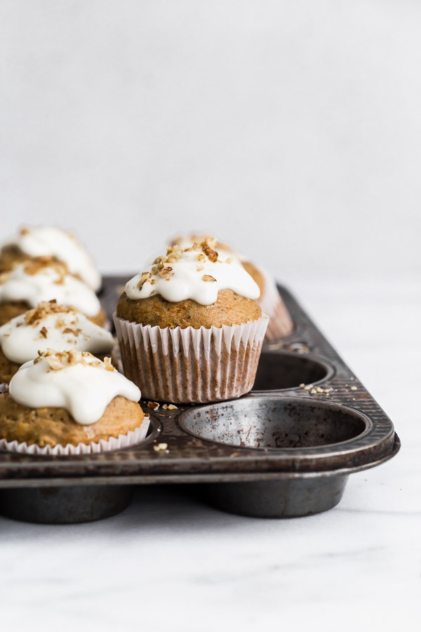 They freeze beautifully. I love a good recipe that keeps on giving. Make a batch {or two} of these carrot cake muffins on Sunday and stash them in your freezer for a quick and delicious breakfast all week long. Now that’s my kinda meal prep.