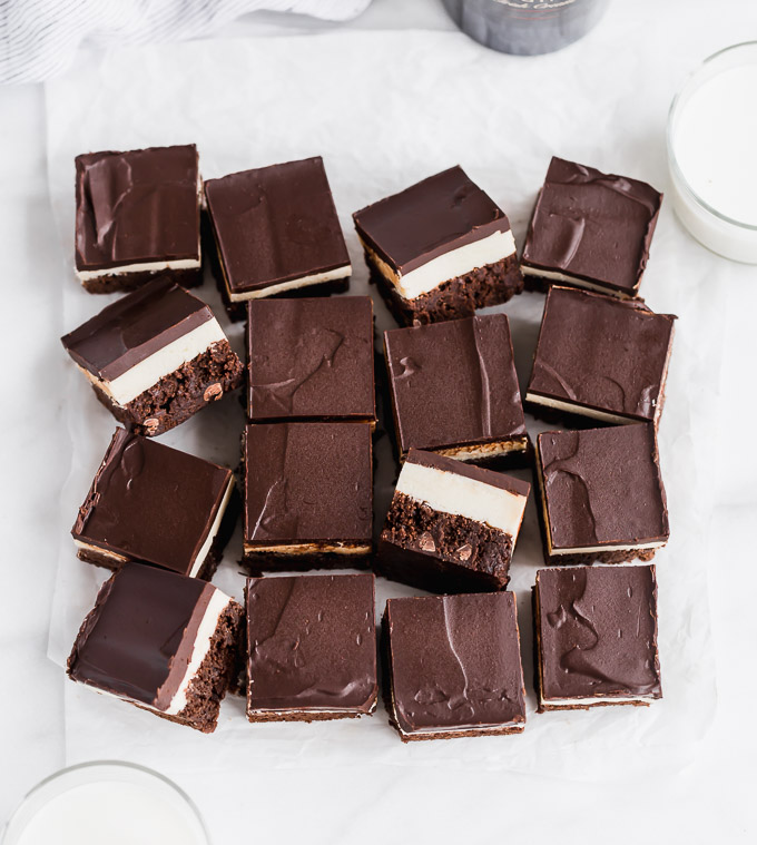 October 31, 2021 at 7:44 pmYou can substitute the Baileys with whole milk or heavy cream. You can certainly freeze these brownies and defrost at room temperature when ready to serve. Sadly, because of the soft filling layer and top layer of chocolate ganache, I don’t think these bars will hold up well during shipping.
